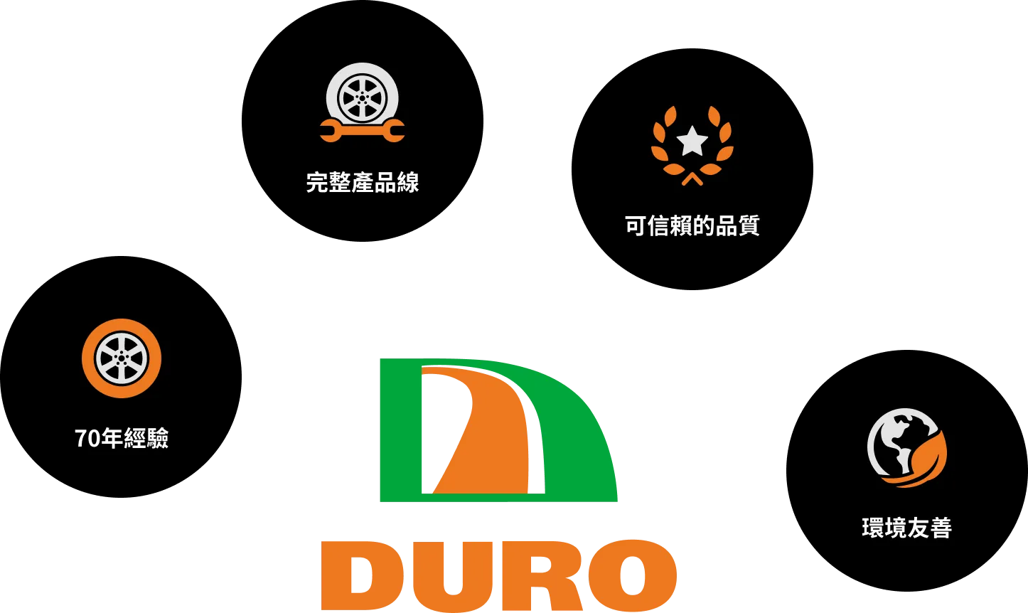 我們與日本技術及資本長期合作,供應各大車廠組裝產線,並為國際品牌提供高標準代工製造。憑藉精湛研發與嚴謹製造,DURO輪胎品質深受全球客戶信賴,屢獲德國紅點設計大獎及台灣精品獎肯定,確立「台灣製造、品質第一」的卓越口碑。