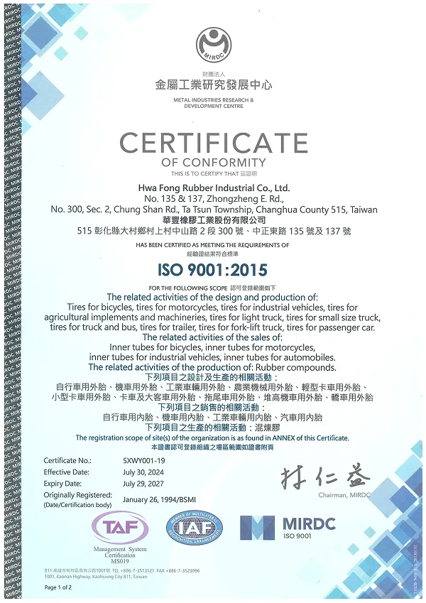 華豐橡膠工業股份有限公司創立於西元1945年,長期專注於輪胎產品的設計開發與生產銷售,並建立了分布於台灣、美國、泰國、中國四地的國際集團;豐富的產品線包括自行車內外胎、機車胎、ATV沙灘車胎、農工業用胎、輕卡車胎、商用車胎與汽車胎的全方位領域,並以華豐輪胎『DURO』品牌行銷全球70餘國,秉持積極創新、顧客滿意的信念,打造屬於DURO華豐輪胎的世界版圖。
